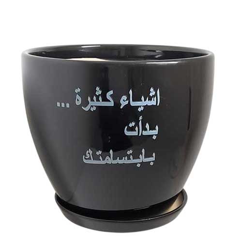 قوارة اسود من السيراميك مع صحن بنفس اللون في قاع القوارة فتحة صغيرة لتصريف الماء